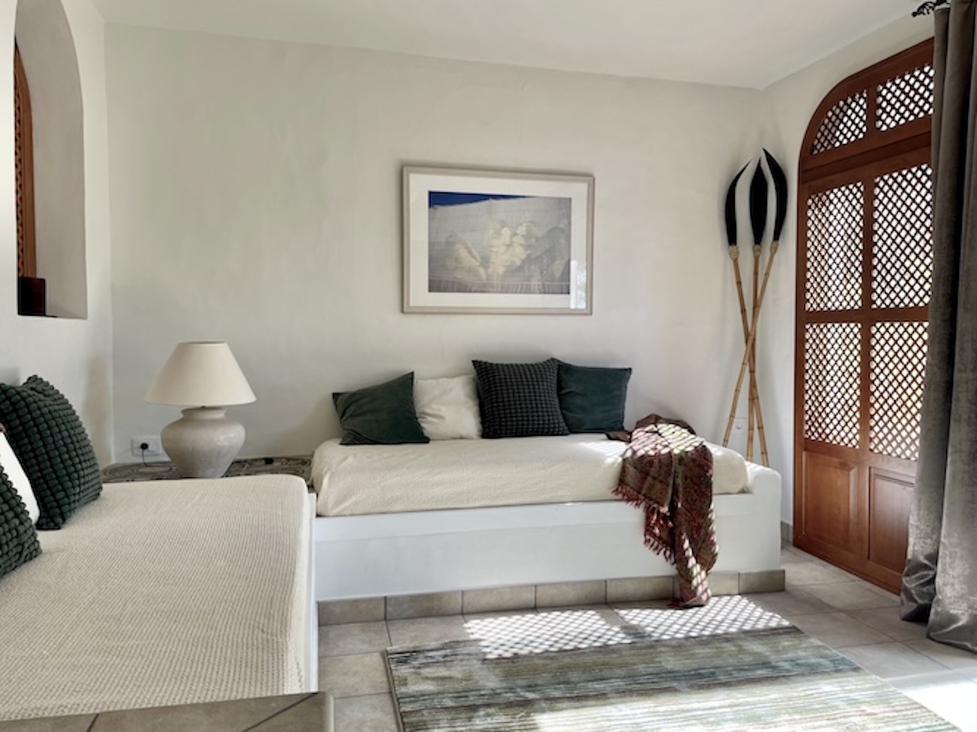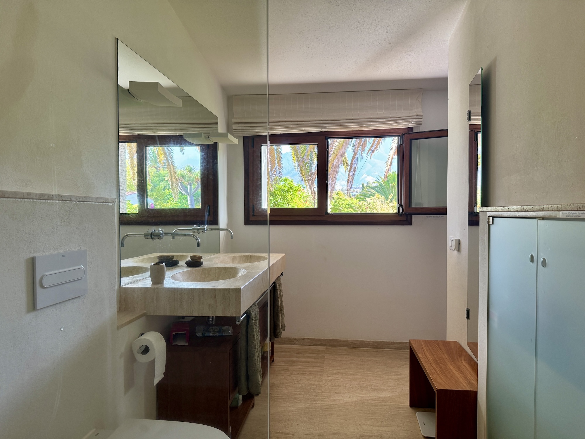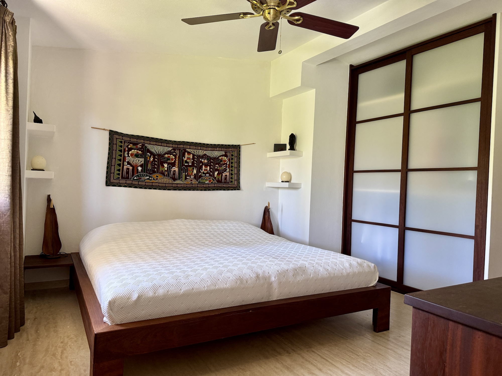 - Master bedroom mit Doppelbett mit 2 Matratzen (100 x 220), Klimaanlage und direktem Zugang zum Bad
