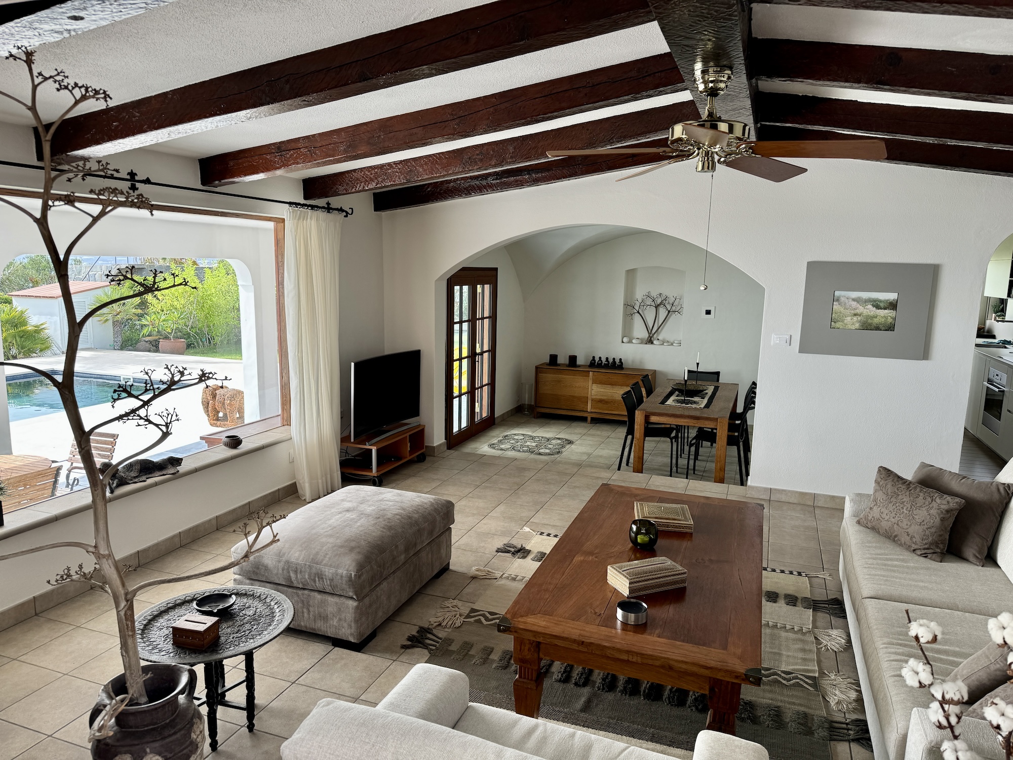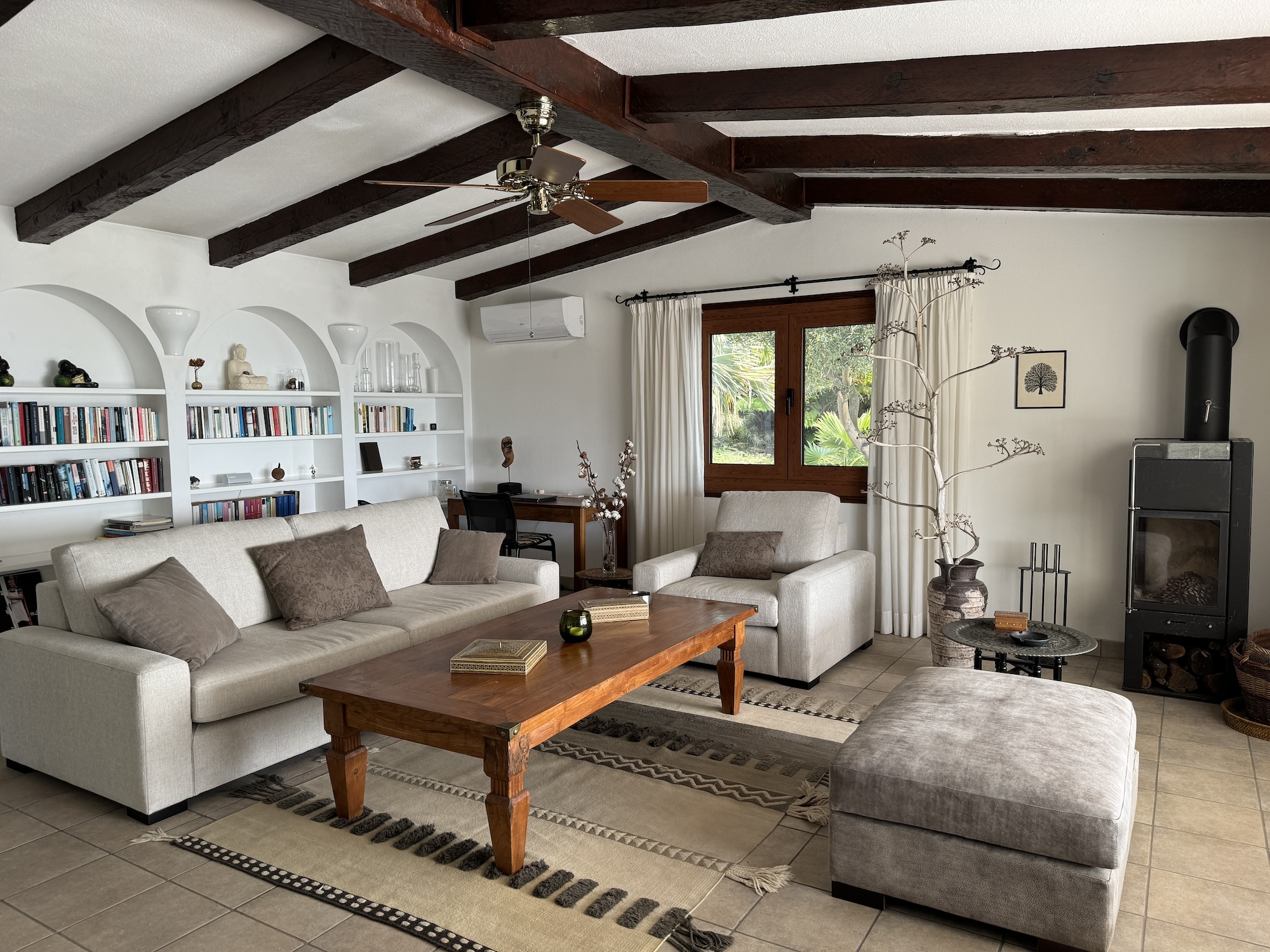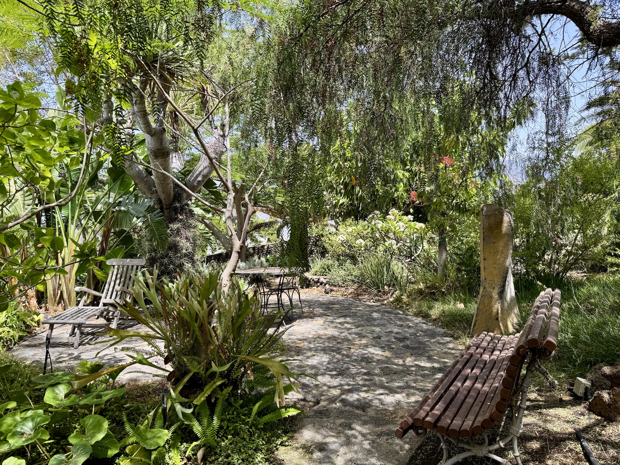 Den Sonnenuntergang im Meer vom Sofa aus geniessen. Der grosse Wohnraum öffnet sich zur gedeckten Veranda. Unmittelbar davor der Pool. Und darum herum der über 3000 m2 grosse Garten mit einem idyllischem Sitzplatz am Teich. Insgesamt über 150 verschiedene Pflanzen, alle beschriftet. Darunter rund 30 Fruchtsorten.