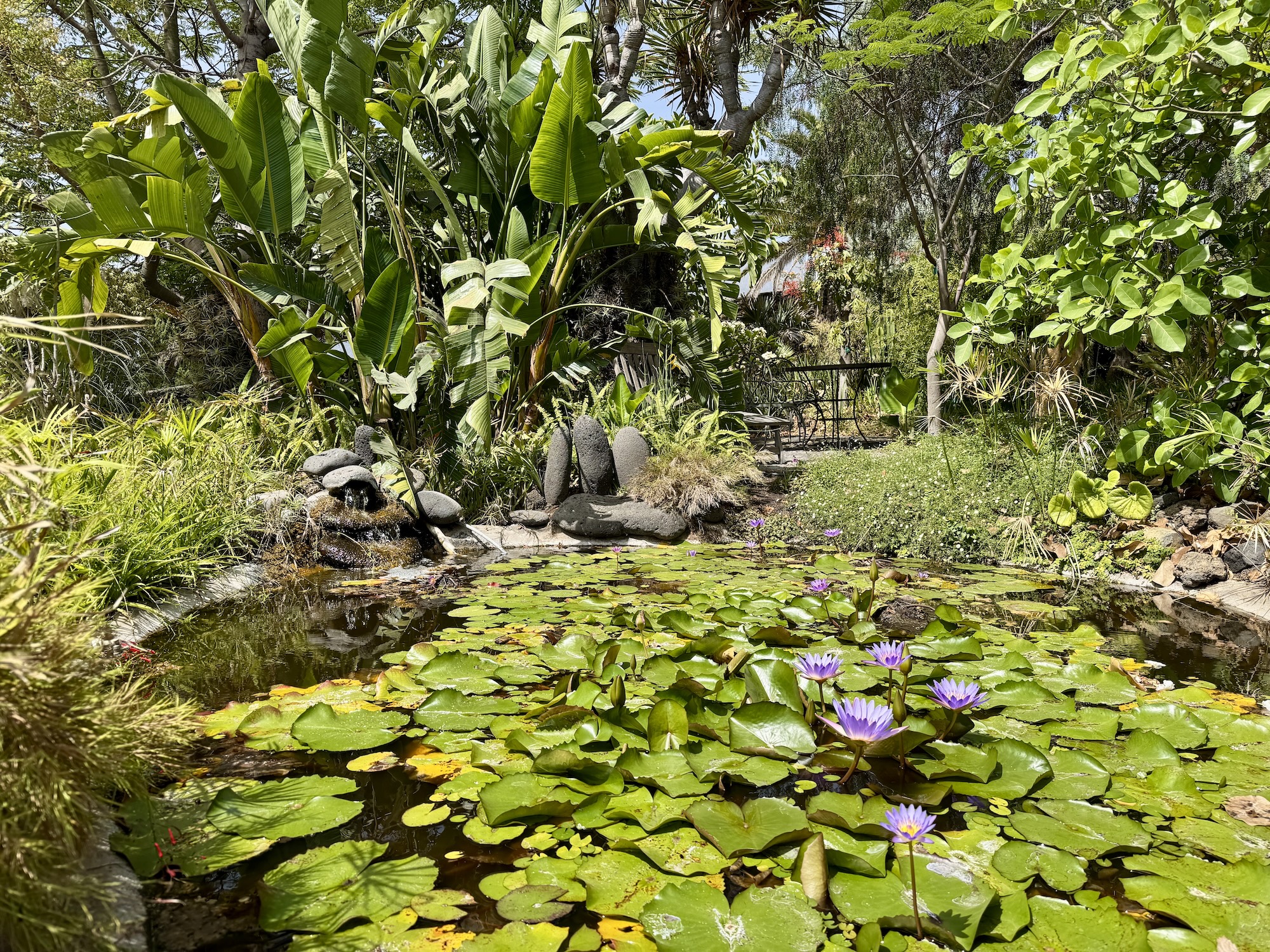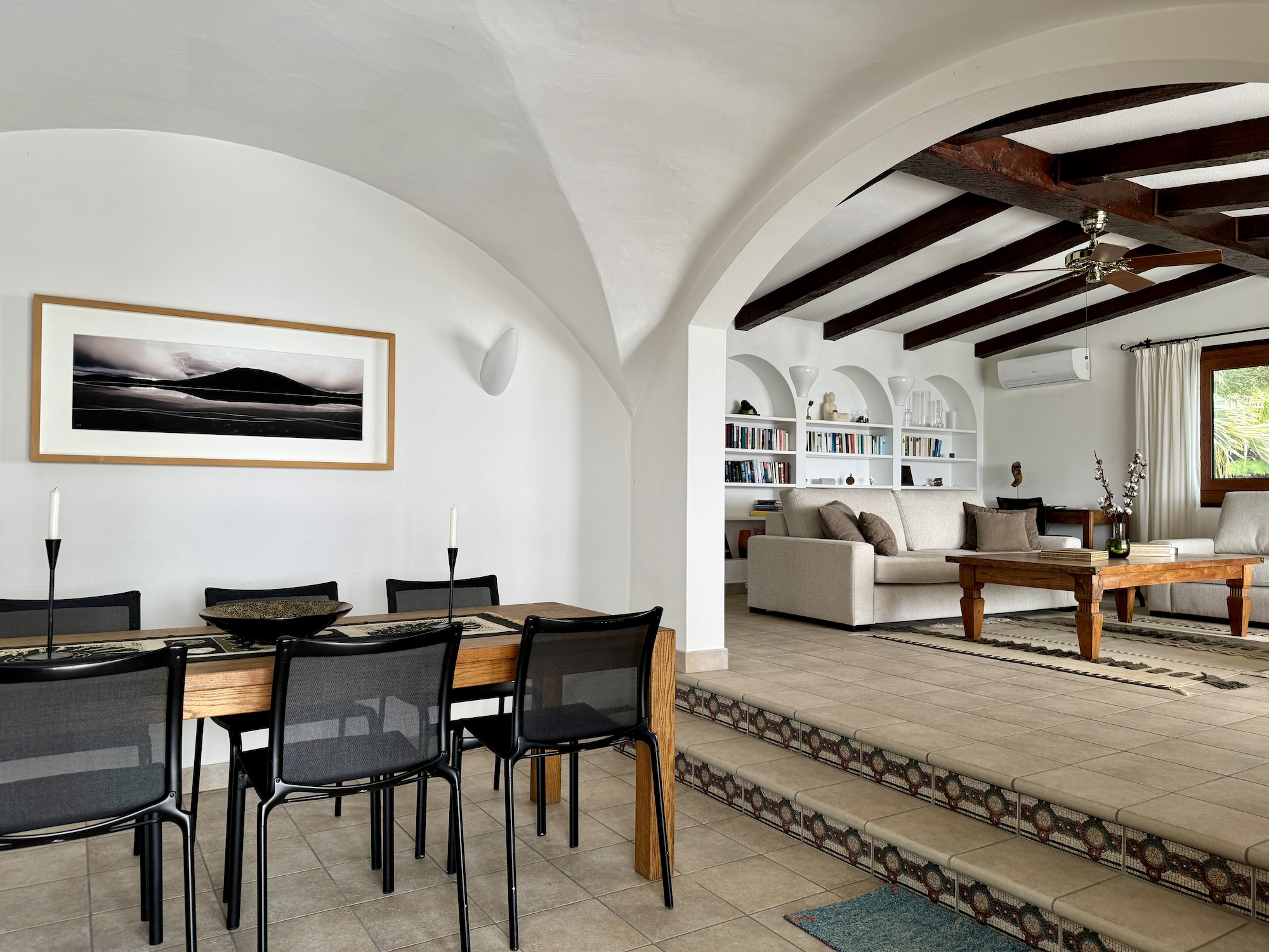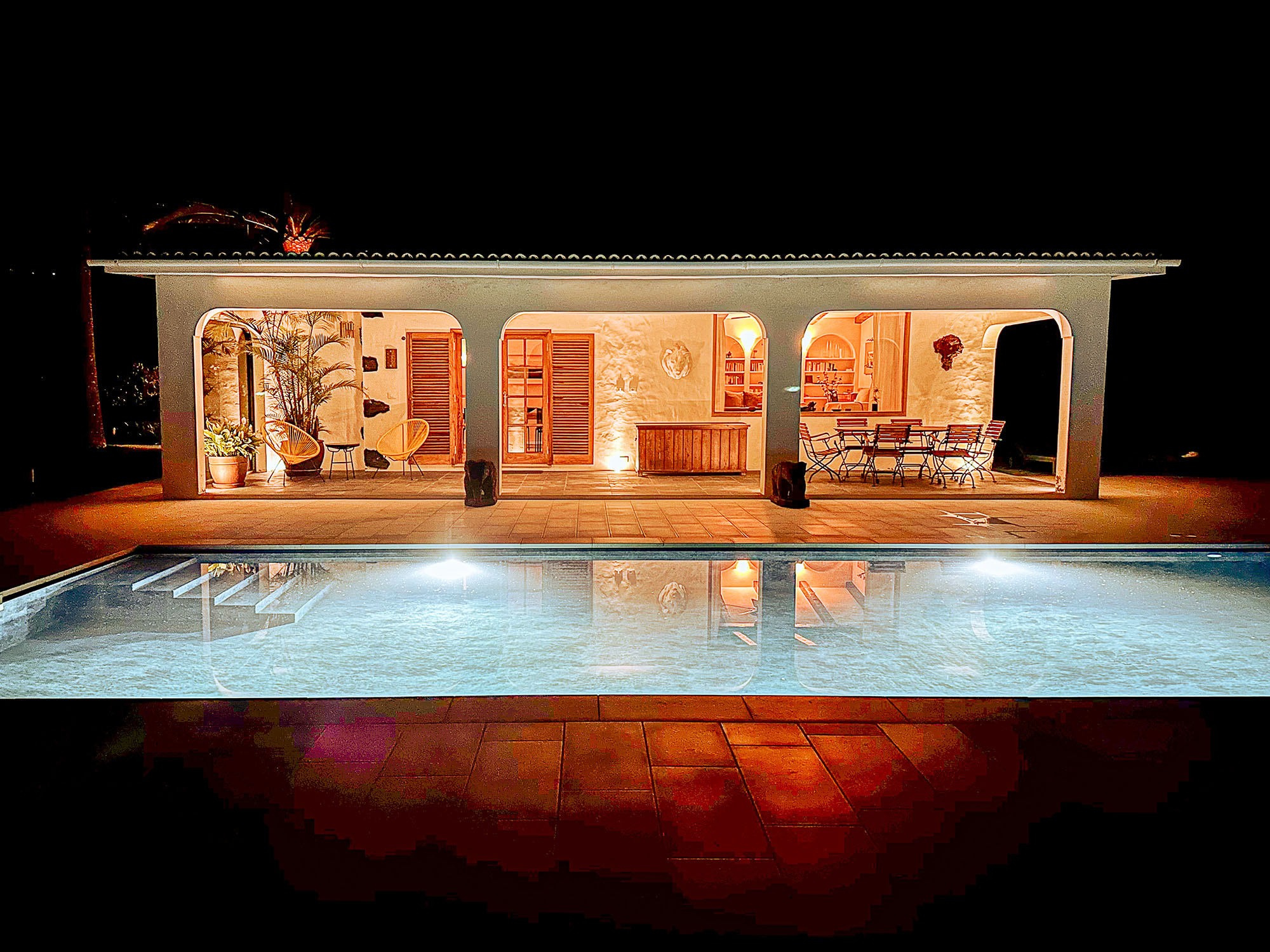 Den Sonnenuntergang im Meer vom Sofa aus geniessen. Der grosse Wohnraum öffnet sich zur gedeckten Veranda. Unmittelbar davor der Pool. Und darum herum der über 3000 m2 grosse Garten mit einem idyllischem Sitzplatz am Teich. Insgesamt über 150 verschiedene Pflanzen, alle beschriftet. Darunter rund 30 Fruchtsorten.