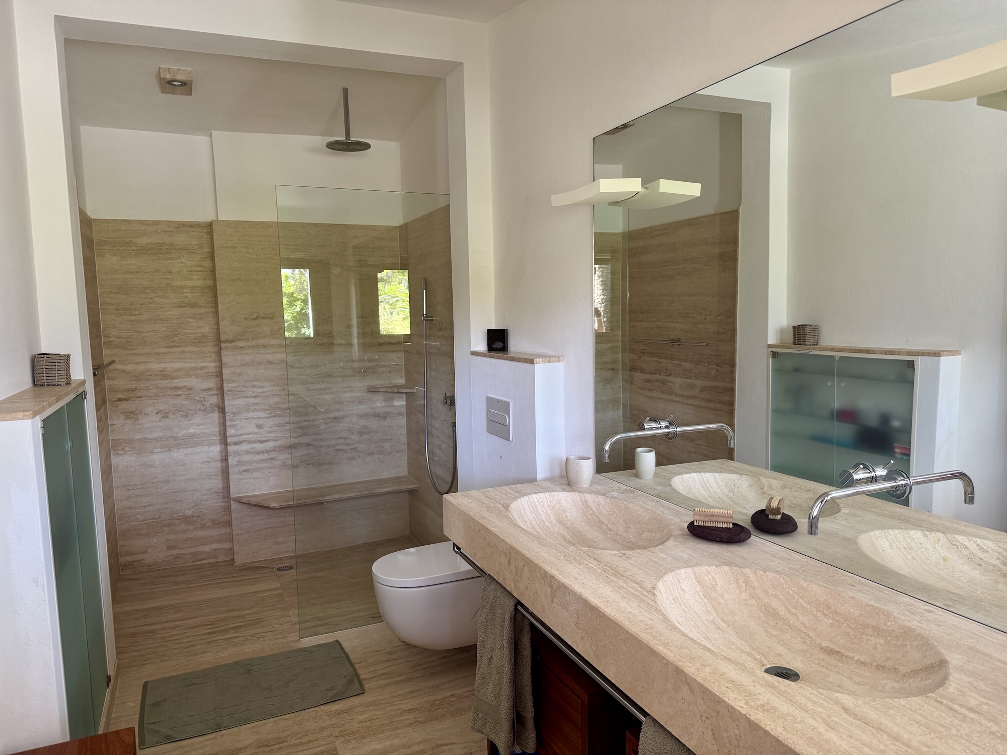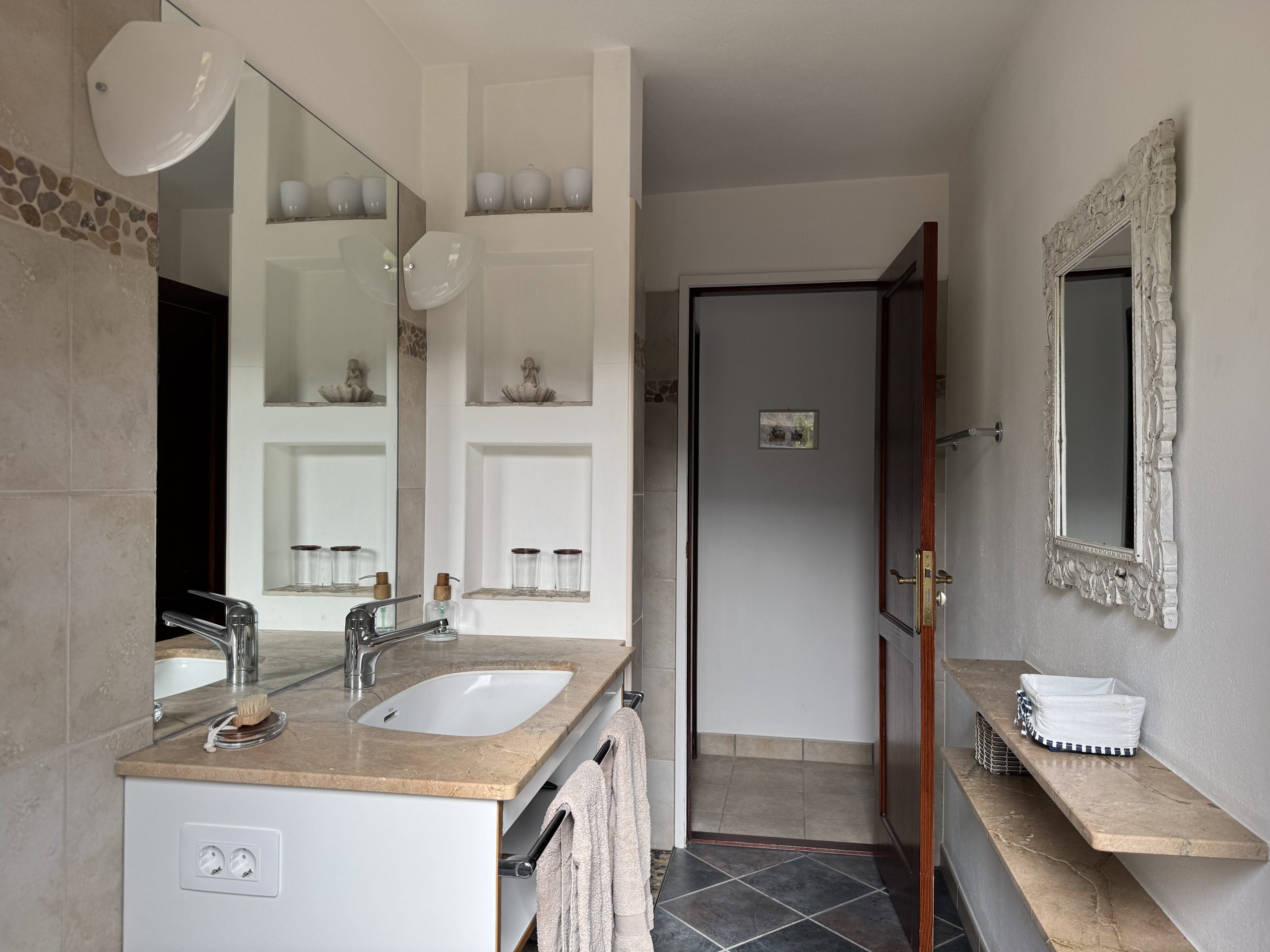 - Gästeschlafzimmer mit Doppelbett mit 2 Matratzen (90 x 200), kleiner Terrasse und separatem Bad
